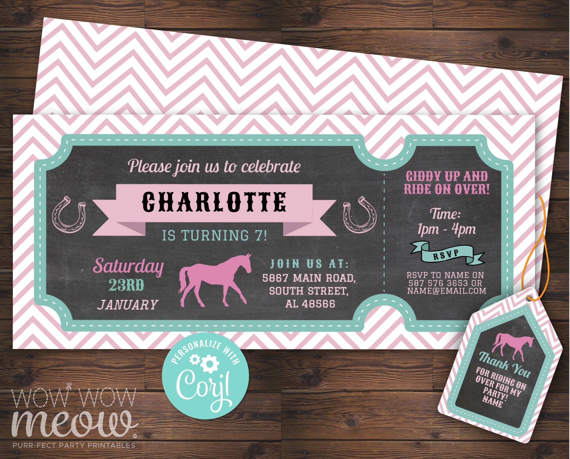 Horse Riding Invitations Ticket Pink Birthday Party Instant Etsy New Zealand