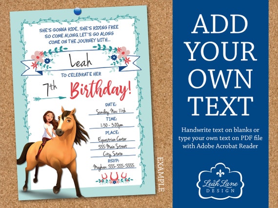 Spirit Riding Free Printable Birthday Party Invitation Horse Etsy